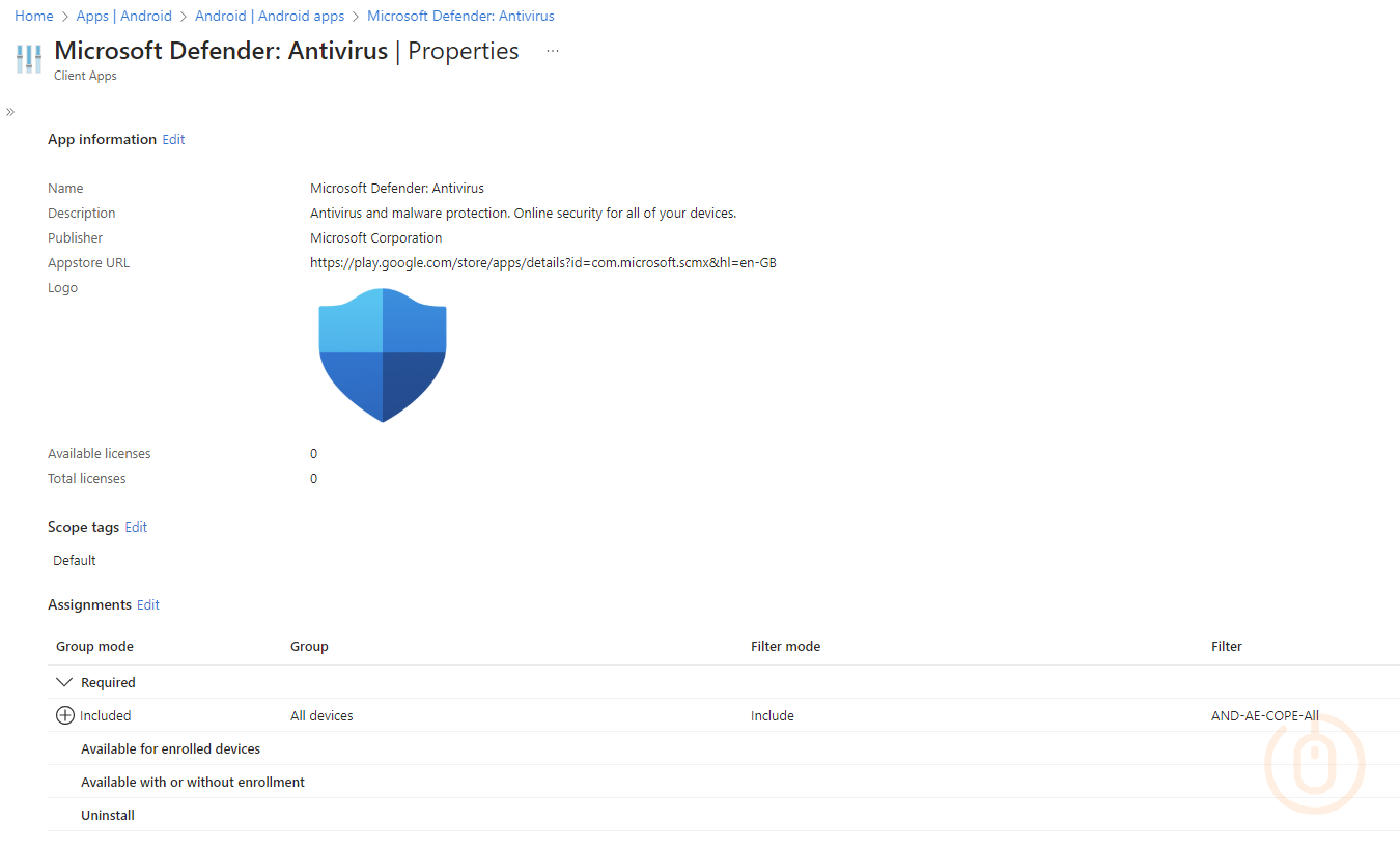 With these basic settings we can at least ensure that the Defender App on the Android Enterprise device will be ready for onboarding.