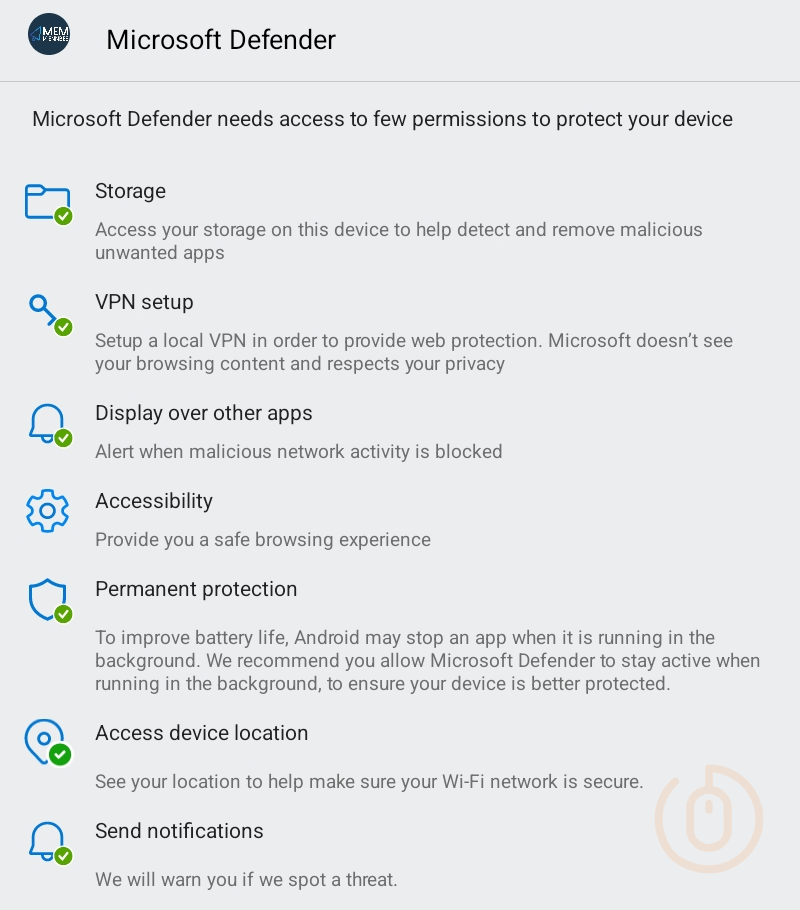 - The Defender App to give the app permissions and configuration settings