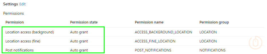 | Location access (background) | Auto grant |