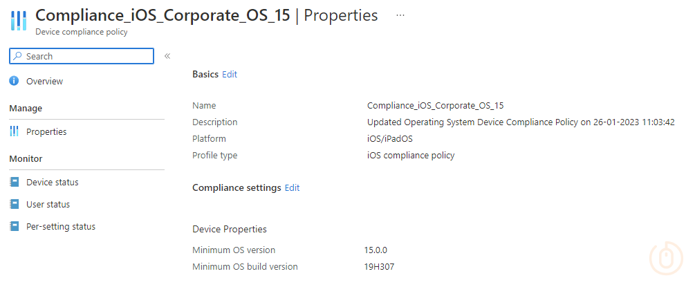 Updated iOS Compliance Policy Compliance_iOS_Corporate_OS_15 with latest Build: 19H307