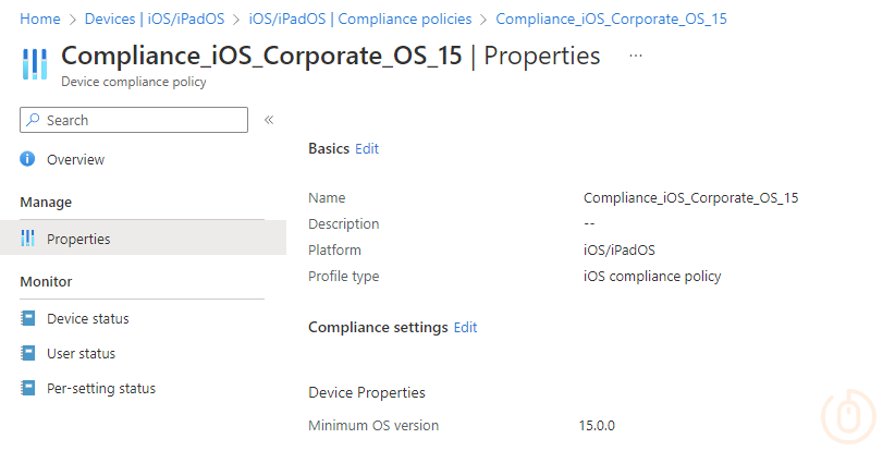 All being good, this data looks something like this for our iOS 16 Compliance Policy: