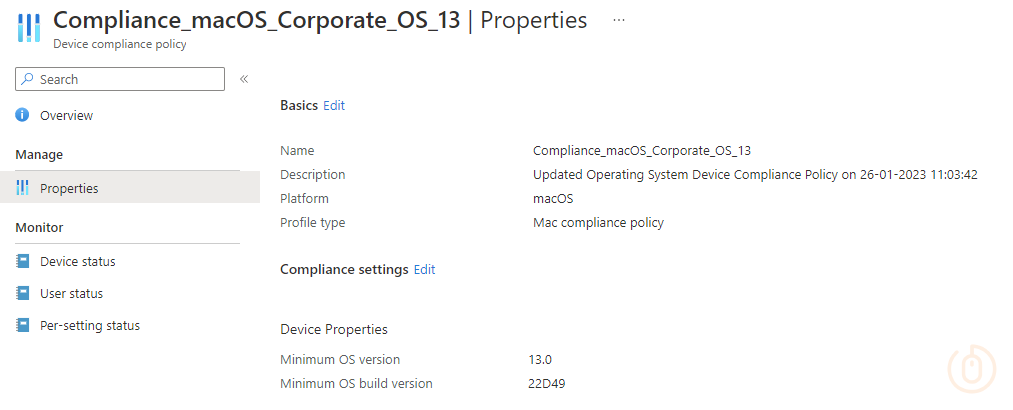Updated macOS Compliance Policy Compliance_macOS_Corporate_OS_13 with latest Build: 22D49