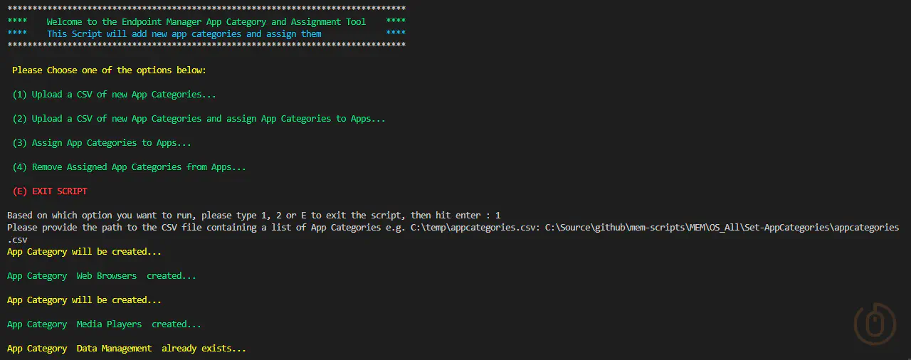 Write-Host '**** Welcome to the Microsoft Intune App Category and Assignment Tool ****' -ForegroundColor Green
