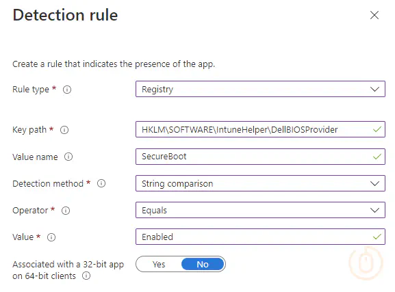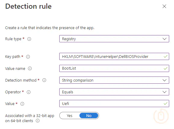 $DetectionRegPath = "HKLM:\SOFTWARE\IntuneHelper\DellBIOSProvider"