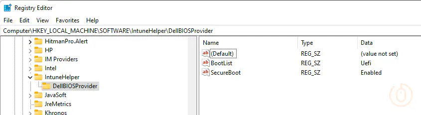 HKLM\SOFTWARE\IntuneHelper\DellBIOSProvider - Value name: