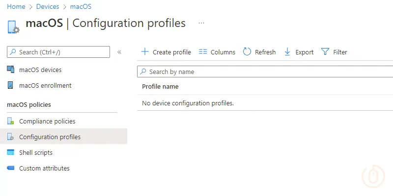 Browse to the macOS Configuration page and select Create profile: