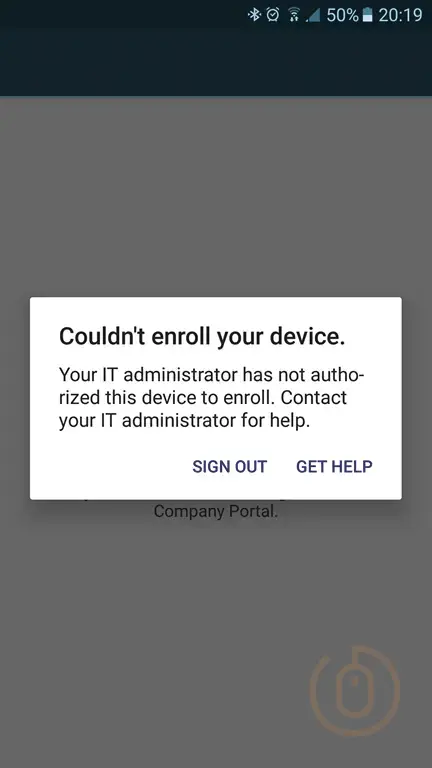 With the Android Device Administrator enrolment being user driven, and not a method for device enrolment that will automatically set the device as corporate owned, if we attempted to enrol these MTR devices into Intune now, we’d get an error about the platform not being supported due to us blocking personal devices in the restriction we created.