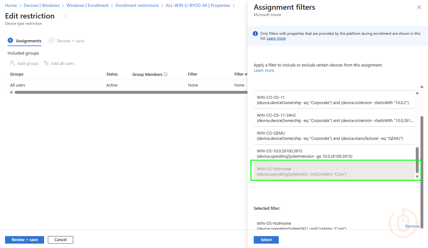 For whatever reason you’ve got to block Windows Home editions, or any other edition of Windows for that matter, using the correct application of Device Platform Restrictions combined with Assignment Filters will allow you limit the Windows devices available to get through the door, and combined with suitable Conditional Access Policies means you’re on the way to some type of Zero Trust security approach.