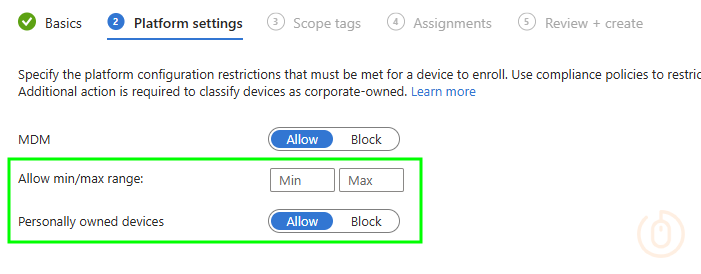This can then be used in the assignment of our BYOD Device Platform Restriction, to only allow the enrolment of personally owned Windows devices that are not Windows Home editions.