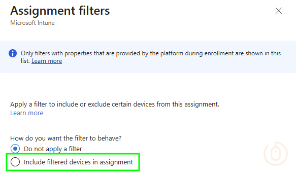 It’s something that appeared relatively recently in the Device Platform Restriction assignment options, the ability to use an Assignment Filter.
