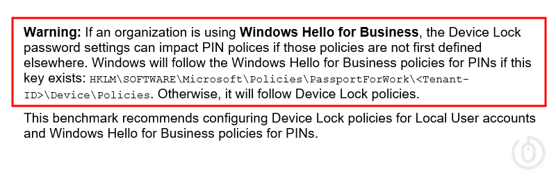 Be aware though, there are settings in the CIS (L1) Device Lock & WHFB - Windows 11 Intune 3.0.1 profile, that will impact the configuration of Windows Hello if you don’t have a policy in place to require PIN complexity settings.