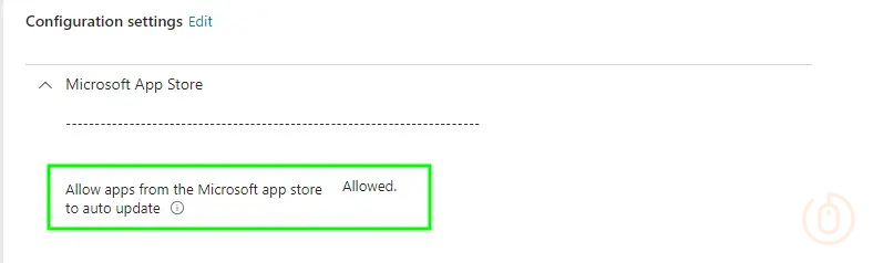 | Microsoft App Store | Allow apps from the Microsoft app store to auto update | Allowed |